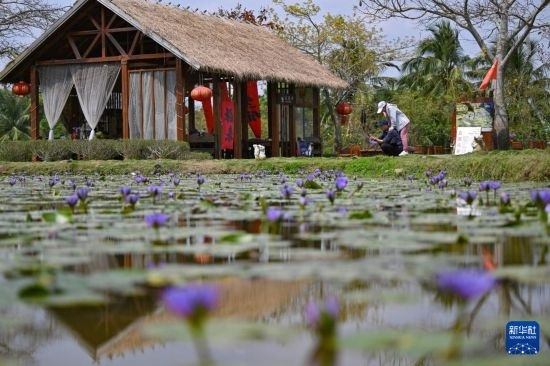 3月20日,游客在瓊海博鰲留客村游玩。