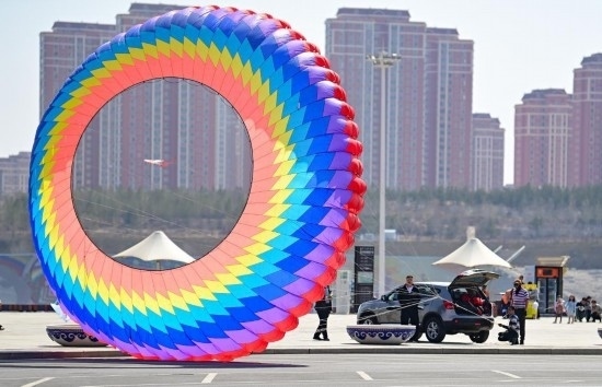 4月1日在康巴什區(qū)亞洲雕塑藝術(shù)主題公園拍攝的風(fēng)箏。