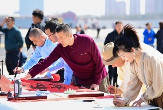 當(dāng)日,內(nèi)蒙古鄂爾多斯市康巴什區(qū)在亞洲雕塑藝術(shù)主題公園舉辦“紙鳶飛舞頌春色”系列活動(dòng),風(fēng)箏愛(ài)好者和文學(xué)書(shū)法愛(ài)好者在活動(dòng)中彩繪風(fēng)箏,詠詩(shī)賦詞,放飛紙鳶,享受春光。