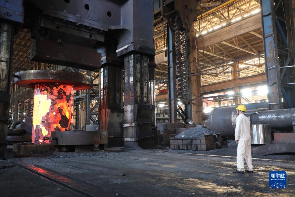 在中國一重集團(tuán)有限公司,工人在車間內(nèi)忙碌(5月19日攝)。新華社記者 唐鐵富 攝