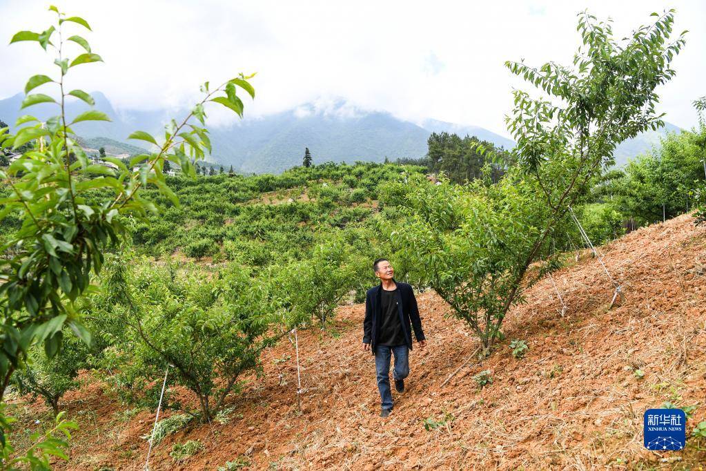 5月19日,重慶市巫山縣曲尺鄉(xiāng)權(quán)發(fā)村村民在查看脆李生長情況。新華社記者 王全超 攝