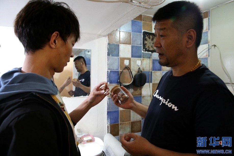 慕名而來的微雕愛好者與楊磊交流。新華網 楊騰格爾攝 -