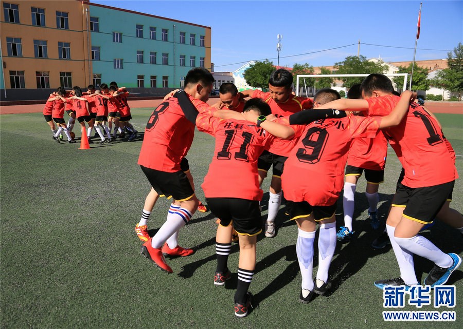 6月15日,內蒙古自治區(qū)呼和浩特市托克托縣第二小學學生在訓練間隙進行趣味活動“圈羊回家”。新華網(wǎng)發(fā)(馬斌攝) 托克托縣第二小學是國家級校園足球特色學校,學校已在4—6年級開設了足球課。 -