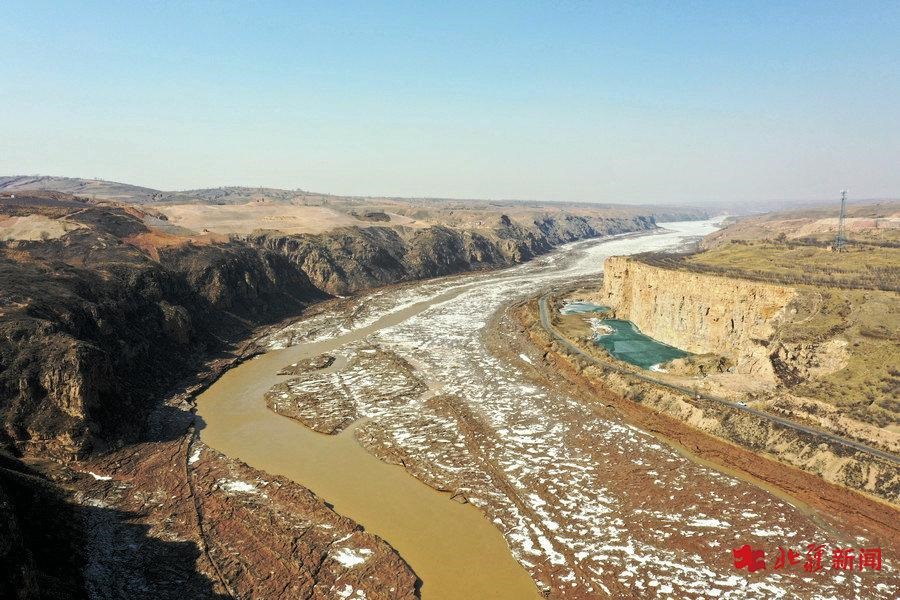 黃河呼和浩特段即將開河 俯瞰冰面碧綠如玉相當(dāng)壯觀